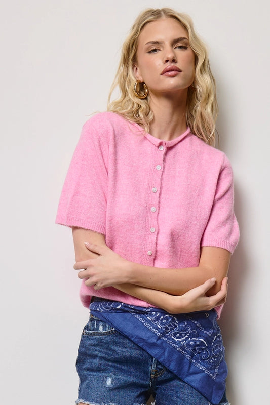 Drew Short Sleeve Cardigan Sweater/Green Tea