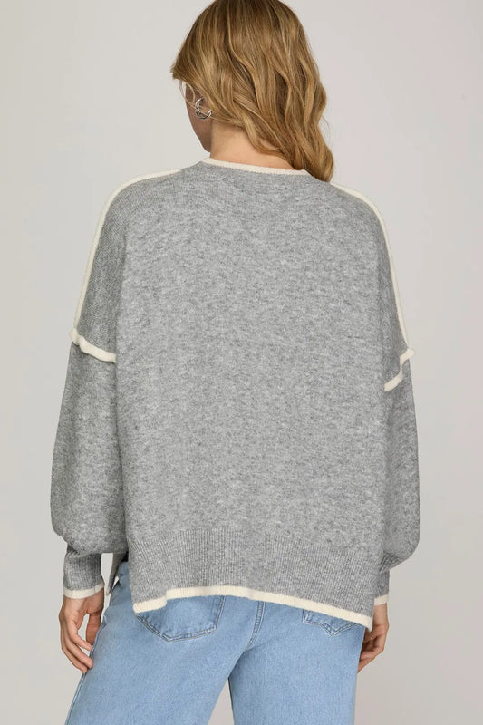 Ava Ribbed Mock Neck S/S Sweater top/ Brown Ash