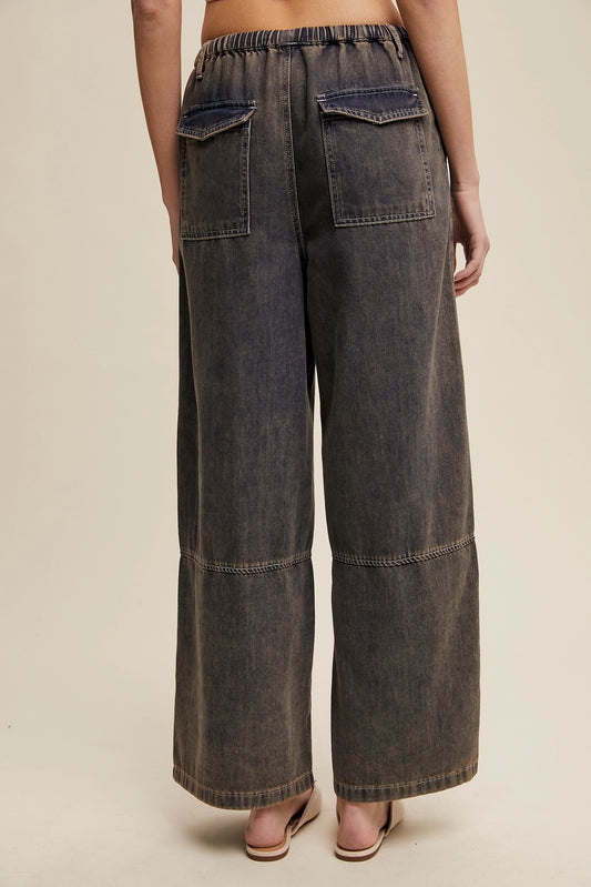 Clara Wide Leg Denim Drawstring Pants