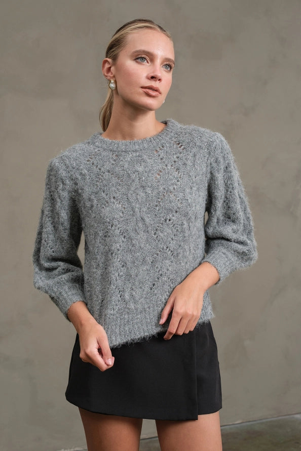 Blair Cable Pointelle Fuzzy Knit Sweater