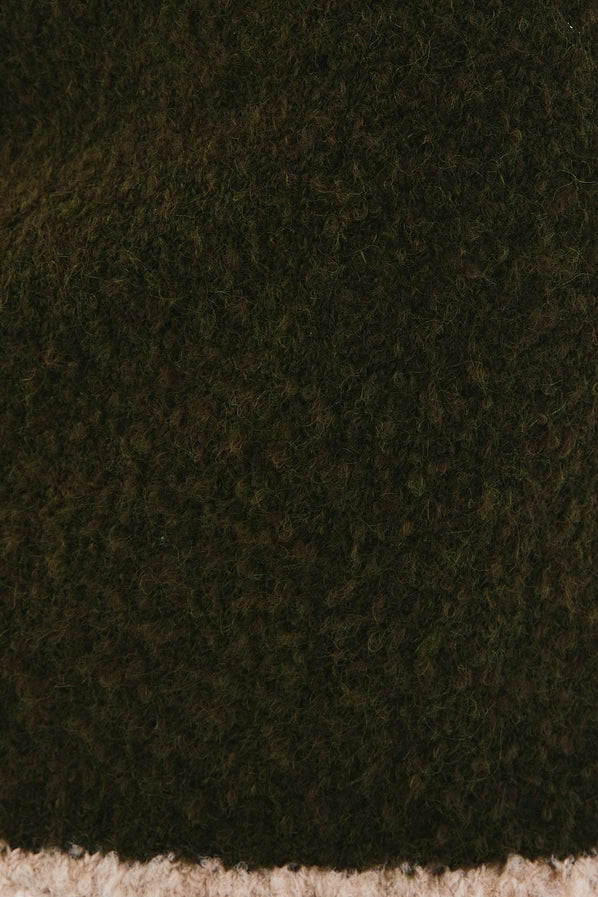 Elastic waist band, boucle material, contrast hemline, stretch-knit material
