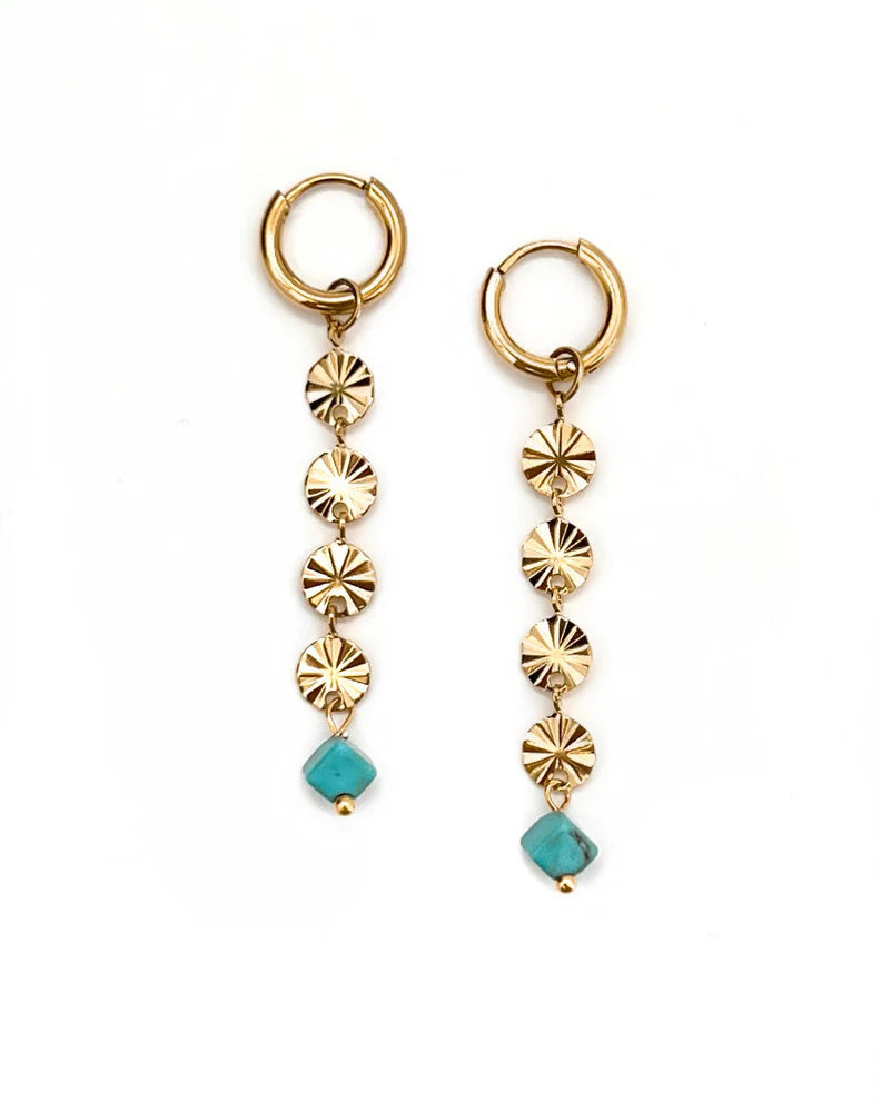 Introducing the perfect addition to your accessory collection - the Endsley Chain Drop Earrings! These fun earrings feature a charming turquoise detail, adding a pop of color to any outfit. Embrace your playful side with these unique chain drop earrings. Take the chain off for a simple huggie look!
