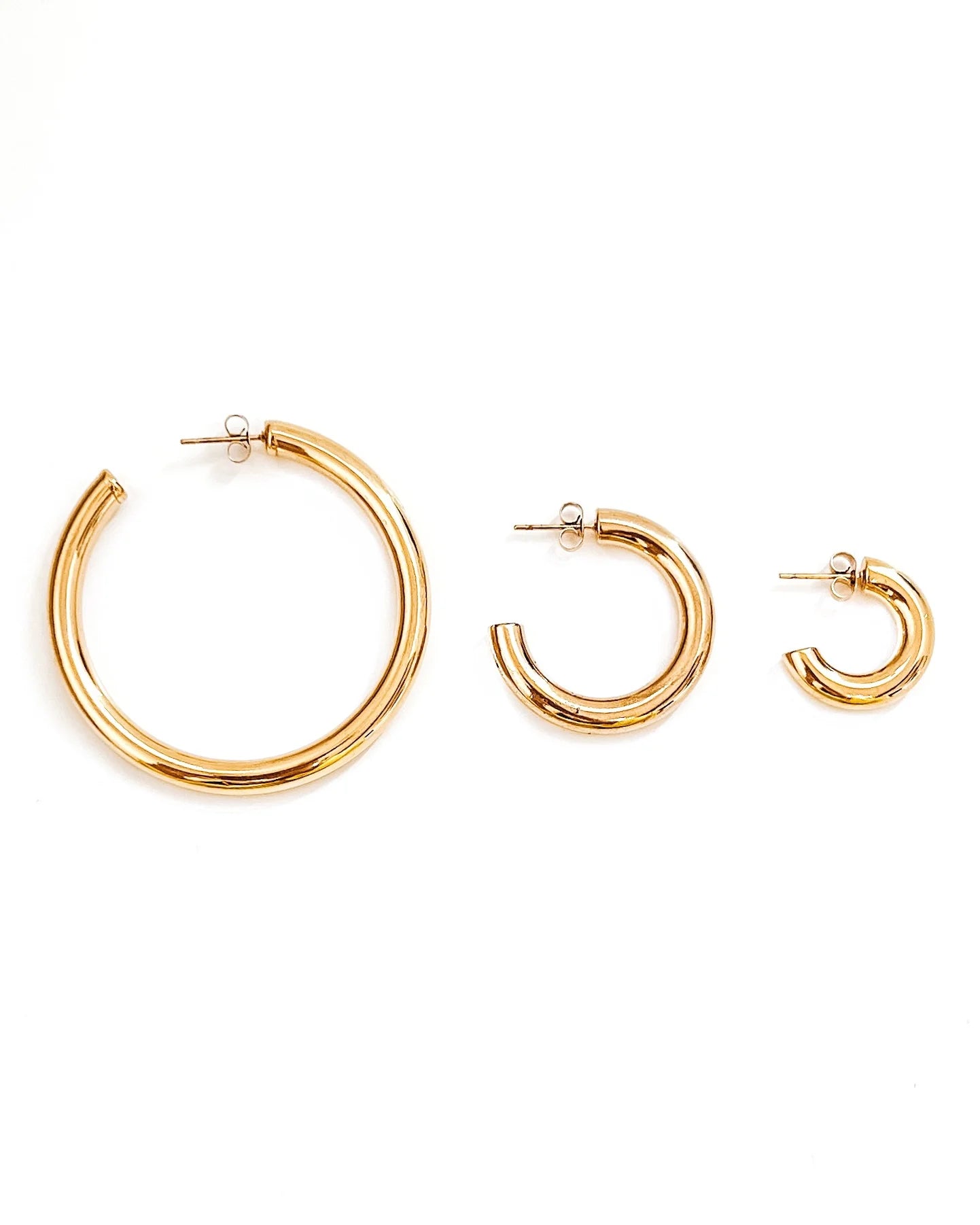 These Ethel Gold Hoop Earrings are the perfect everyday accessory. They are crafted from 18k gold and designed to be waterproof and tarnish resistant.