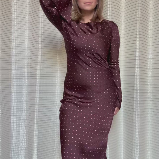 Georgie Burgundy Long Sleeve Polka Dot Dress