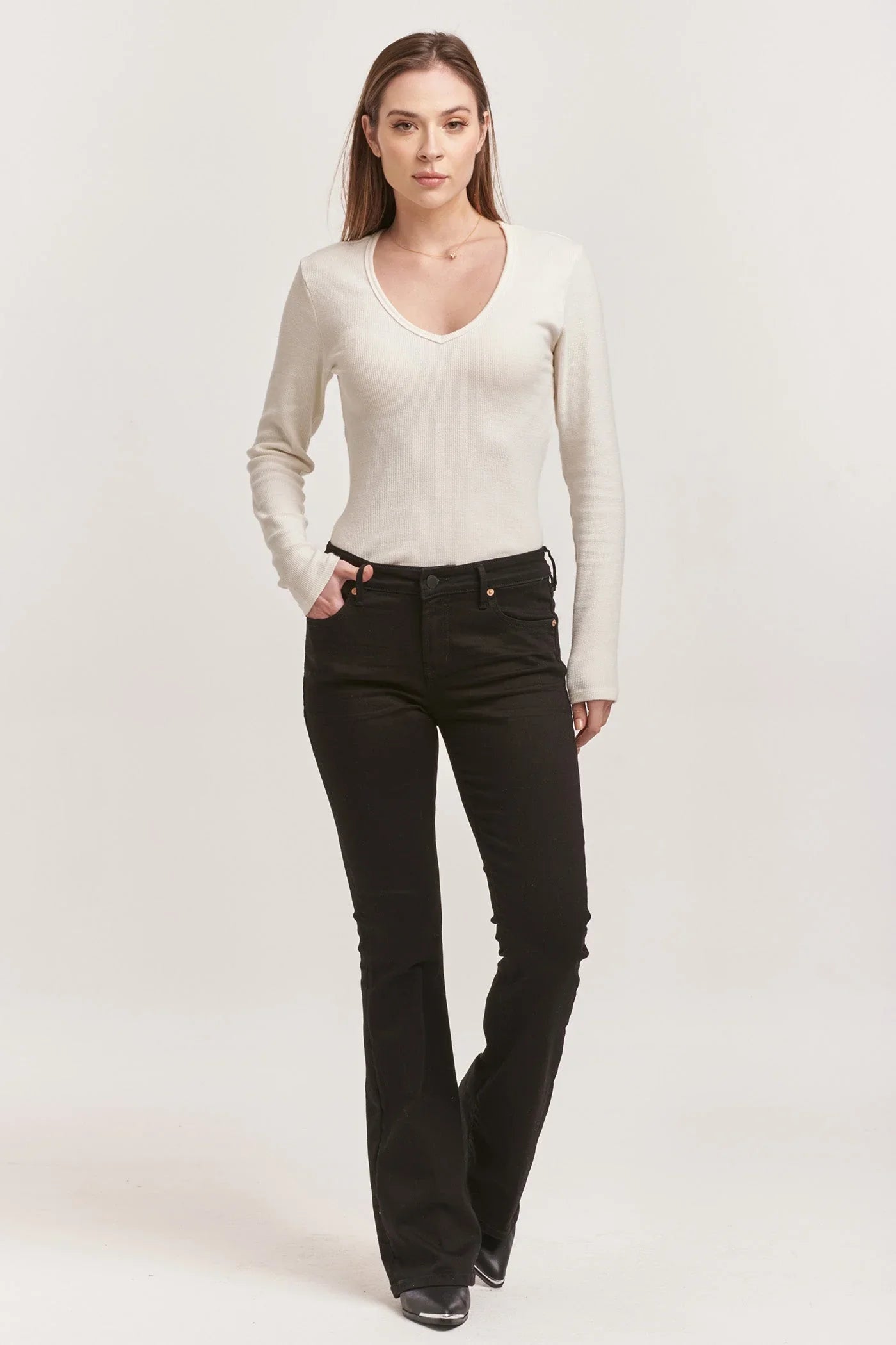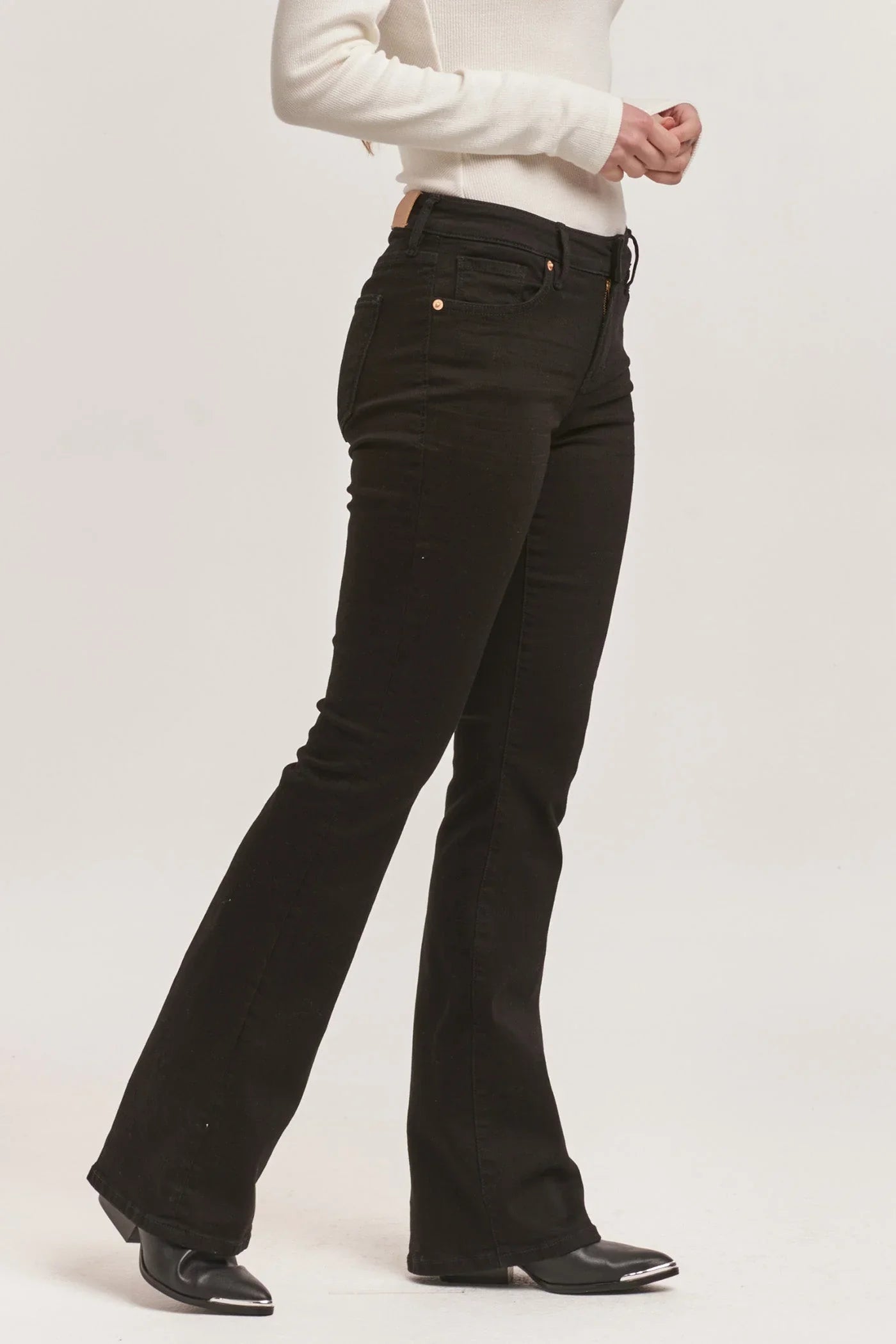 Bootcut Fit mid Rise Jean in a trendy Black Olive shade. Designed for a flattering silhouette, these jeans offer a comfortable fit that complements any style. The bootcut design provides a touch of flair while ensuring versatility, making them an essential addition to your wardrobe. Perfect for both casual outings and more polished looks, you'll love the way these jeans perform in your everyday life.